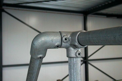 Frei einstellbar für jeden Winkel mit Rohrverbinder Typ 125. Auch andere Rohrverbinder sind geeignet.