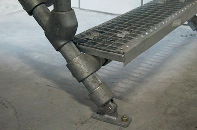Gitterrosthalter und Bodenverankerung mittels Rohrverbinder